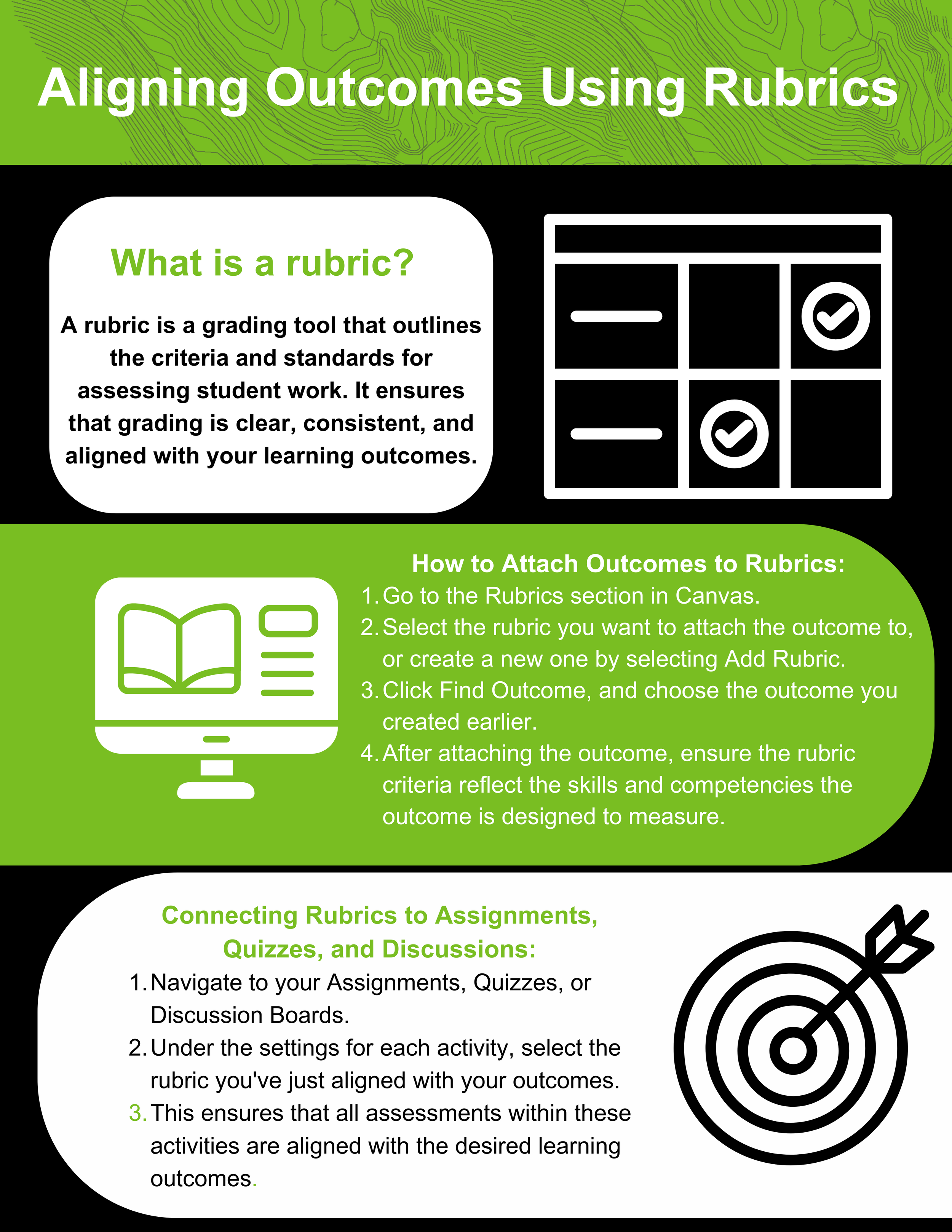 Infographic that accompanied video demo for accessing Canvas Outcomes.
